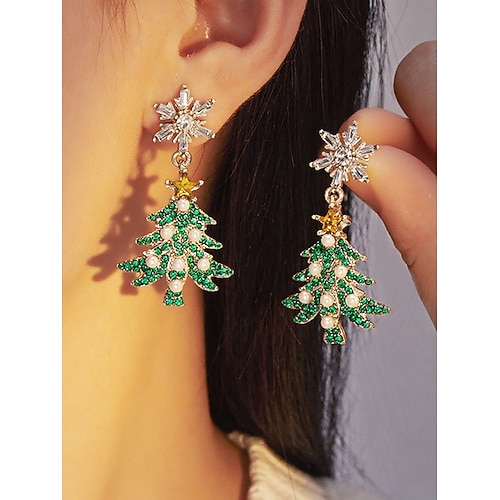 orecchini da donna a forma di albero di Natale: materiale in lega, strass colorati e dettagli in perle, gioielli festivi per le feste, perfetti per le feste di Natale e come regalo stagionale