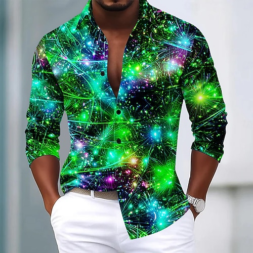 Natale Per uomo Glitter scintillanti Luci natalizie Camicia Camicia in raso Camicia elegante Manica Lunga Moda Casual Feste Ferie Estate Primavera Autunno Collo ripiegato Stampa 3D Camicie con bottoni