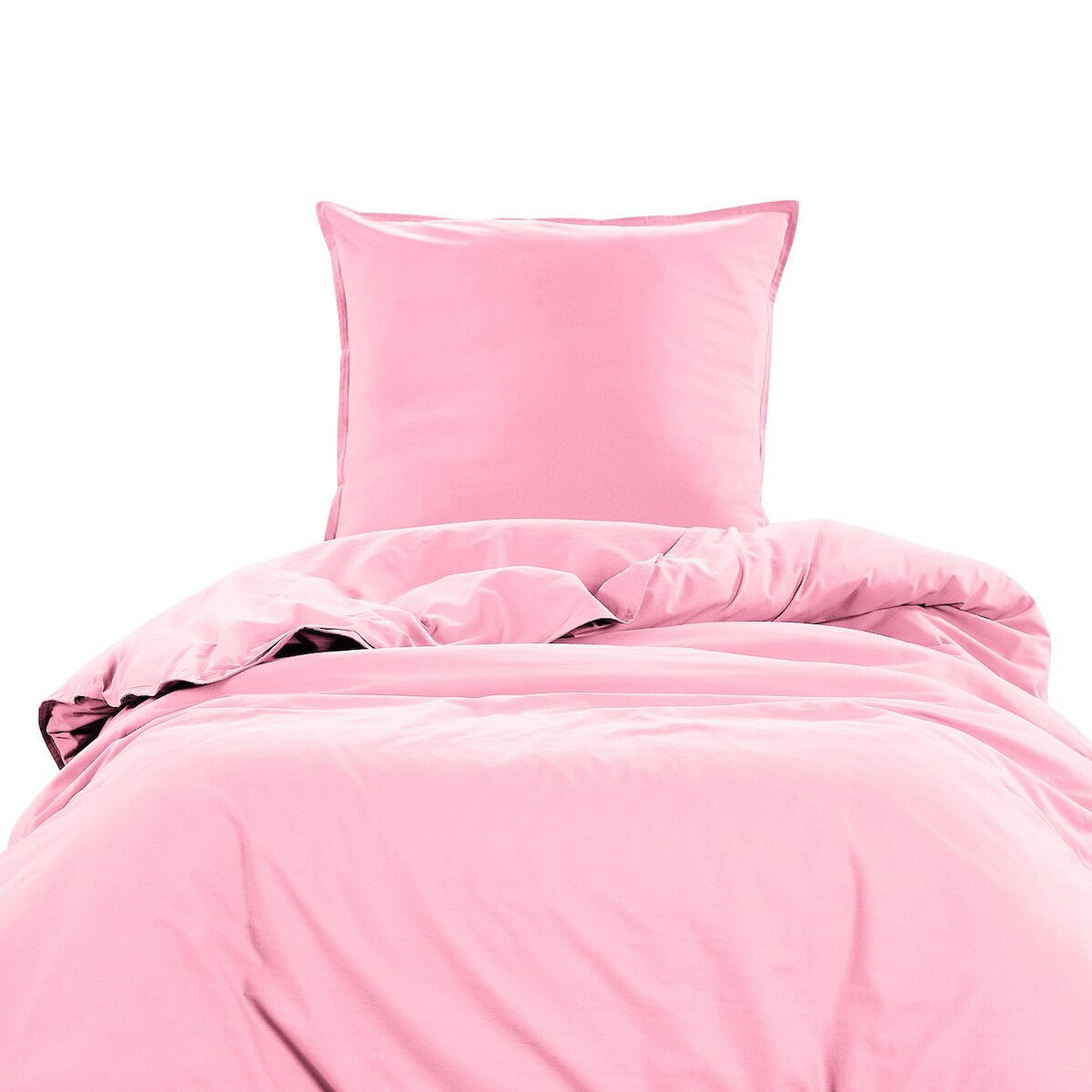 wometo Bettwäsche Renforce Stone-Washed 155x220 & 80x80 cm 100% Baumwolle - rosa OekoTex weich modern Used-Look Leinen-Optik