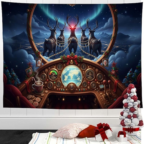 Arazzo natalizio con scena innevata – arazzo da parete con paesaggio invernale da favola, arazzo decorativo con motivo di albero di Natale e paesaggio forestale con fiocchi di neve per la casa, la