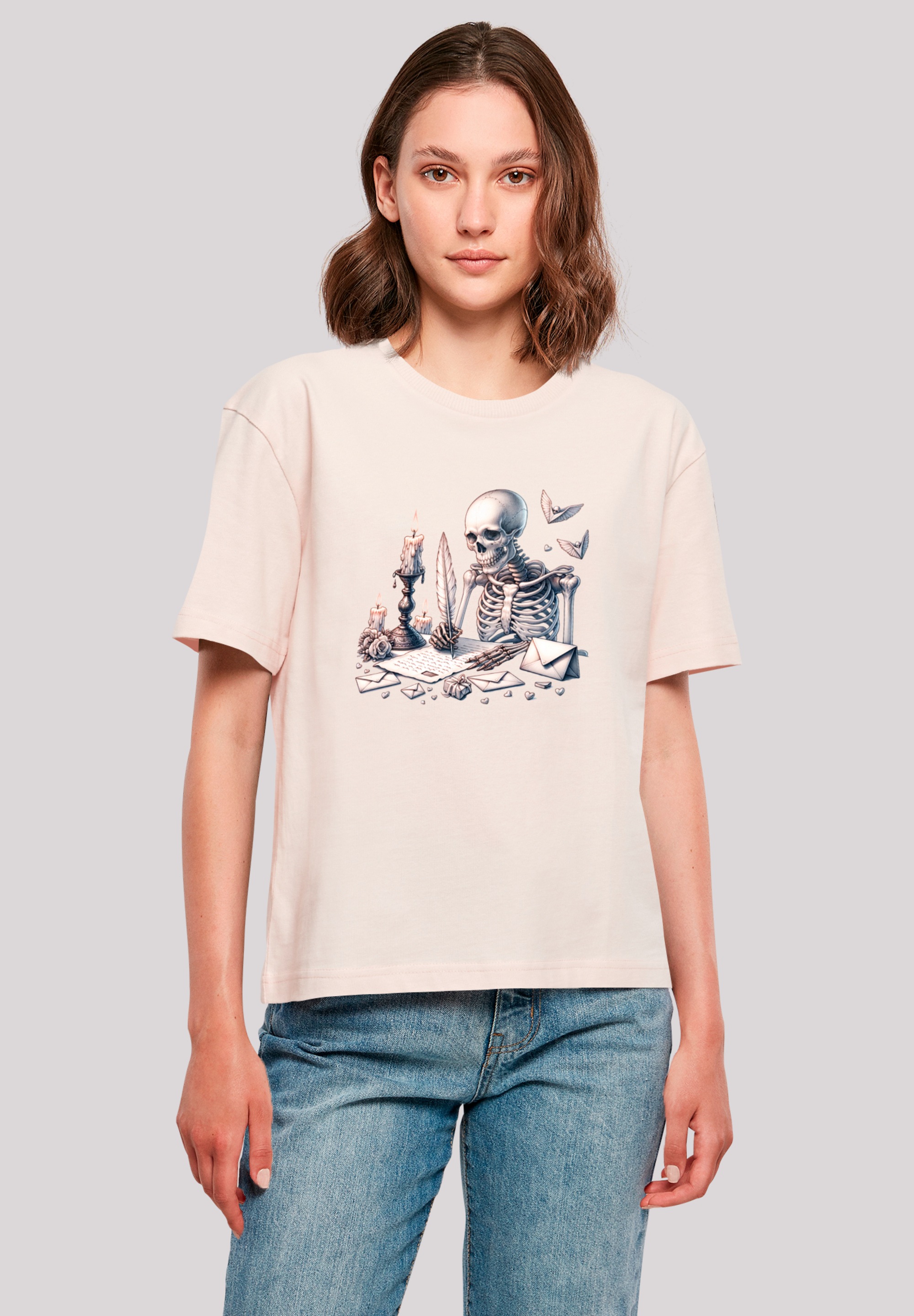 T-Shirt F4NT4STIC "Skelett Liebesbrief Valentinstag", Damen, Gr. 4XL, pink, Obermaterial: 100% Baumwolle, casual, oversize, Rundhals, Kurzarm ohne Bündchen, Shirts, Premium Qualität