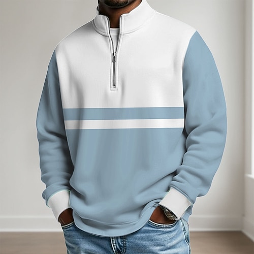 Per uomo Blocco di colori Polo con zip Manica Lunga Magliette polo Colletto alla coreana Casual Scuola Athleisure Ferie Abbigliamento quotidiano Stampa 3D Polo con cerniera a un quarto Primavera