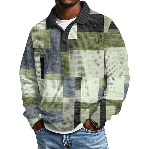 Per uomo Geometrico Blocco di colori Magliette Polo a Nido d'Ape Testurizzato Manica Lunga Magliette polo Bavero Abbigliamento Sportivo Casual Scuola Athleisure Abbigliamento quotidiano Stampa 3D