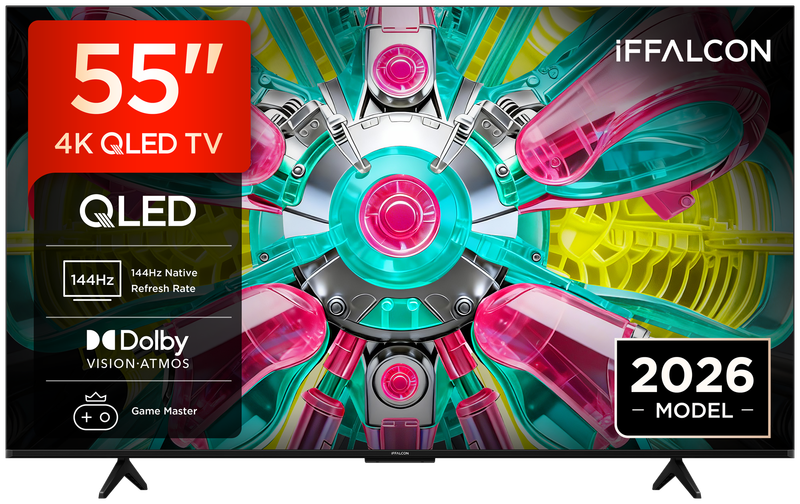 iFFALCON 55U75A 55" 4K QLED, HDR, Google TV, Dolby Vision, HDR10+ & Atmos, 144Hz VRR, FreeSync Premium, Game Master, Spraakbediening, Google Assistent, Google Cast, AirPlay 2