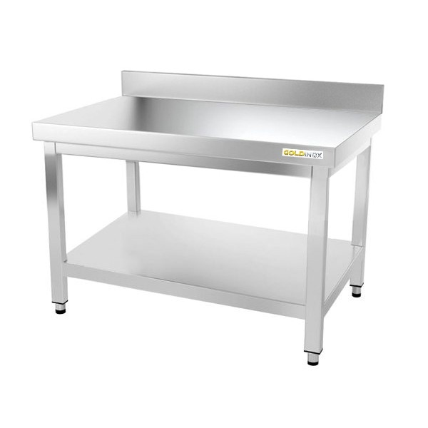 Arbeitstisch aus Edelstahl 1000 x 800 mm mit 2 PREMIUM / Regalen. GOLDINOX