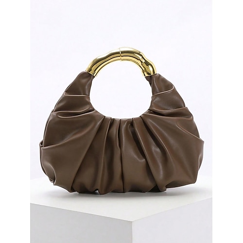 borsa da donna in similpelle con arricciature e manico dorato, elegante stile minimalista, opzioni multicolor, borsa da sera chic per invitati a matrimoni, cocktail party ed eventi formali