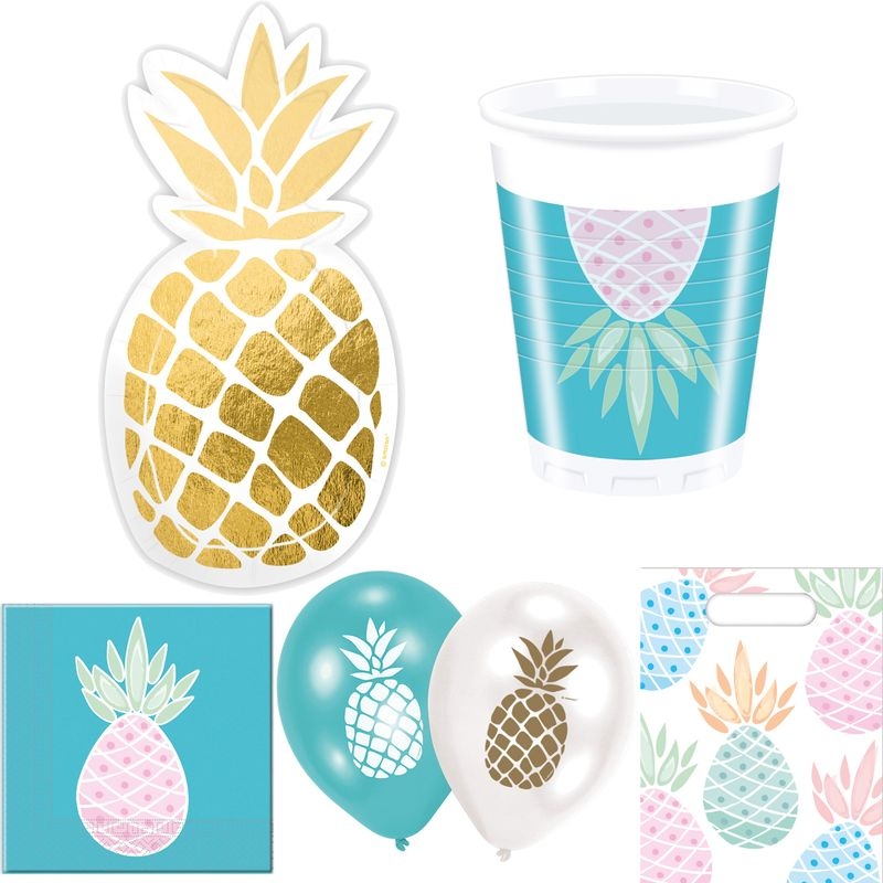 Partyset 52 tlg- Ananas Sommer Party Set Deko Geburtstag pastell