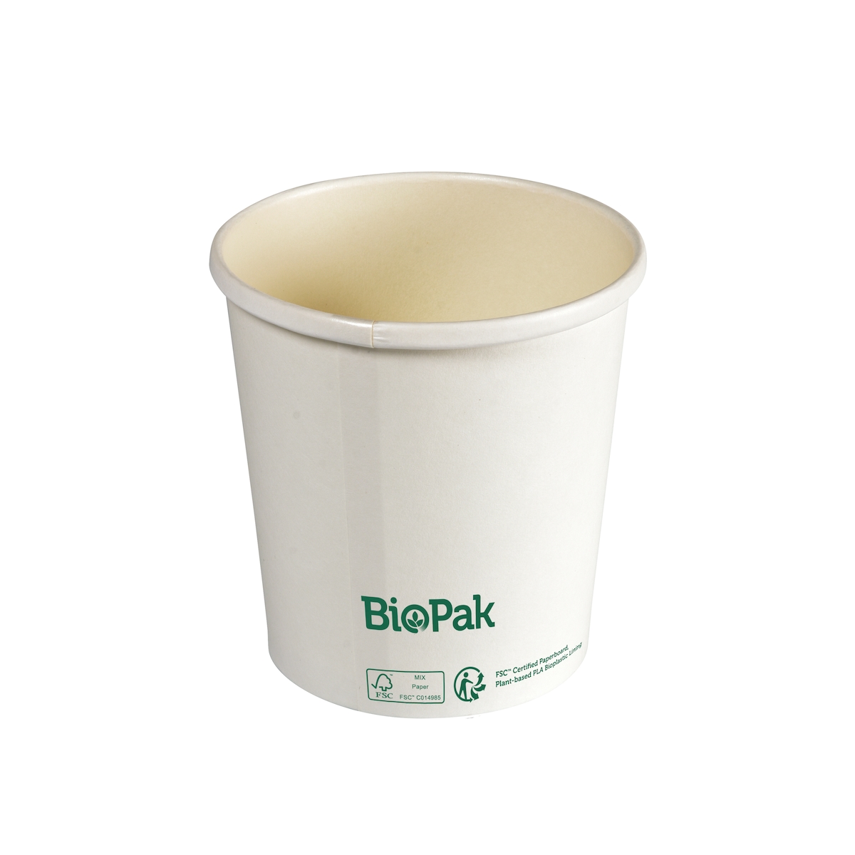 BioPak DUNI - Runde Dose Ronda Short 480ml 97x97x100mm Karton/PLA Weiß - 16 x 25 = 400 Stück