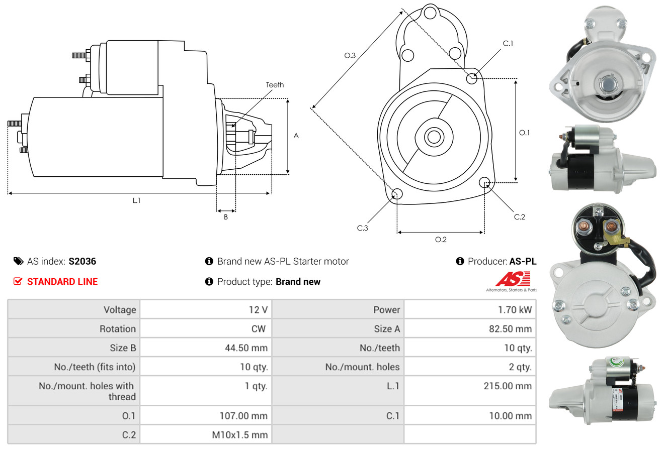 AS-PL Starter 12V für NISSAN 23300-4J606 S2036