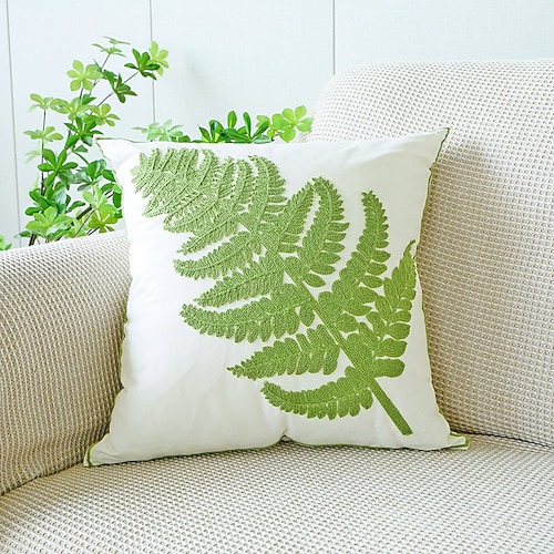 Copricuscini con fiori di magnolia verde fresco, foglie verdi ricamate, cuscini per divano, poggiatesta per letto, cuscino di supporto lombare per ufficio