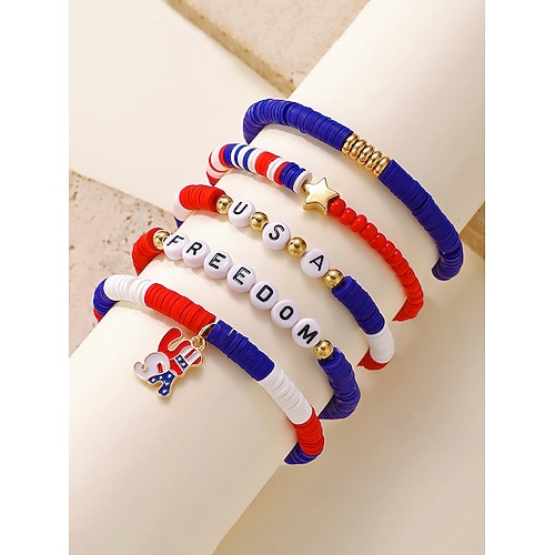Set di braccialetti per donne in acrilico con perline dell'anniversario dei 250 anni degli Stati Uniti disponibili in più stili tema libertà USA perfetti per abbigliamento casual