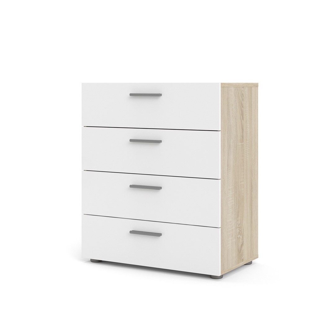 Petra Kommode 4 Schubladen Dekor Eiche Struktur und Weiß Hochglanz.