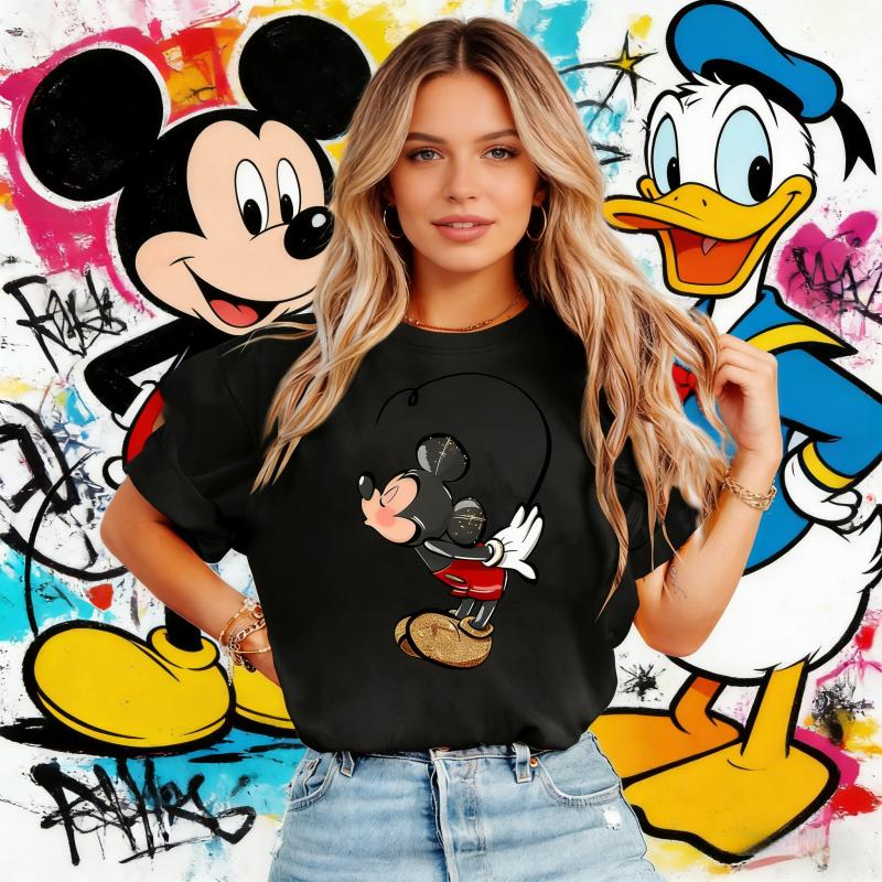 2026 Sommer Disney Mickey Maus T-Shirt 100% Reine Baumwolle Kurzärmelig Lässig Locker Atmungsaktiv Oberteil Nicht dehnbar cm