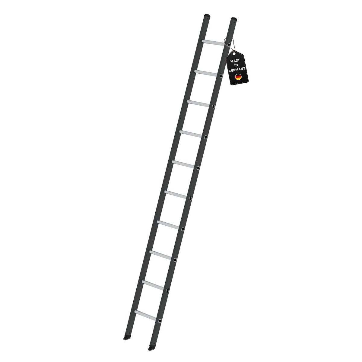 PROREGAL Sprossen-Anlegeleiter Made in Germany | 10 Sprossen | Arbeitshöhe 4,1m | 350mm breit ohne Traverse | Traglast 150kg | Anthrazit