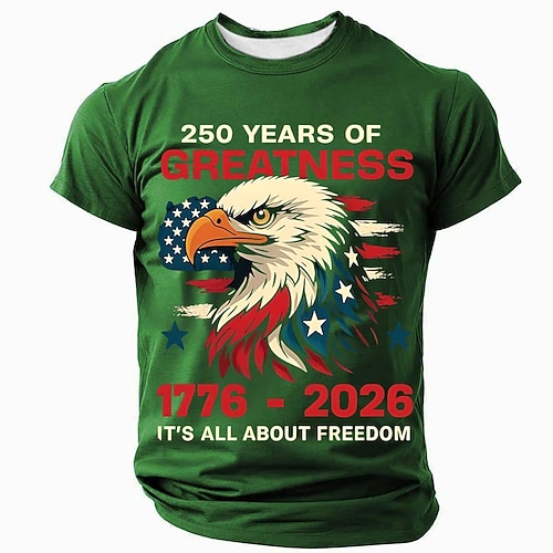 Per uomo Bandiera Americana Aquila 250° anniversario degli Stati Uniti Maglietta Manica Corta maglietta Stampa 3D Girocollo Camicia Quotidiano Militare Streetwear Quotidiano Blu Nero Rosso Estate
