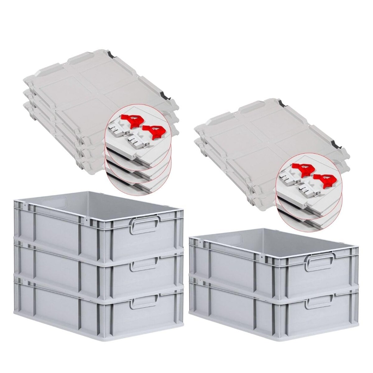 PROREGAL SuperSparSet 5x Eurobox NextGen Economy mit Scharnierdeckel & roten Verschlüssen, Griffe zu, HxBxT 17x40x60cm, 34L, Eurobehälter, Box