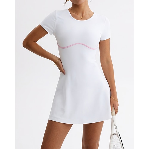 Per donna Tinta unita Abito da tennis con pantaloncini Abito sportivo Manica Corta Elastico Traspirante Tennis Corsa Fitness Girocollo Vestito Bianco Abbigliamento da tennis