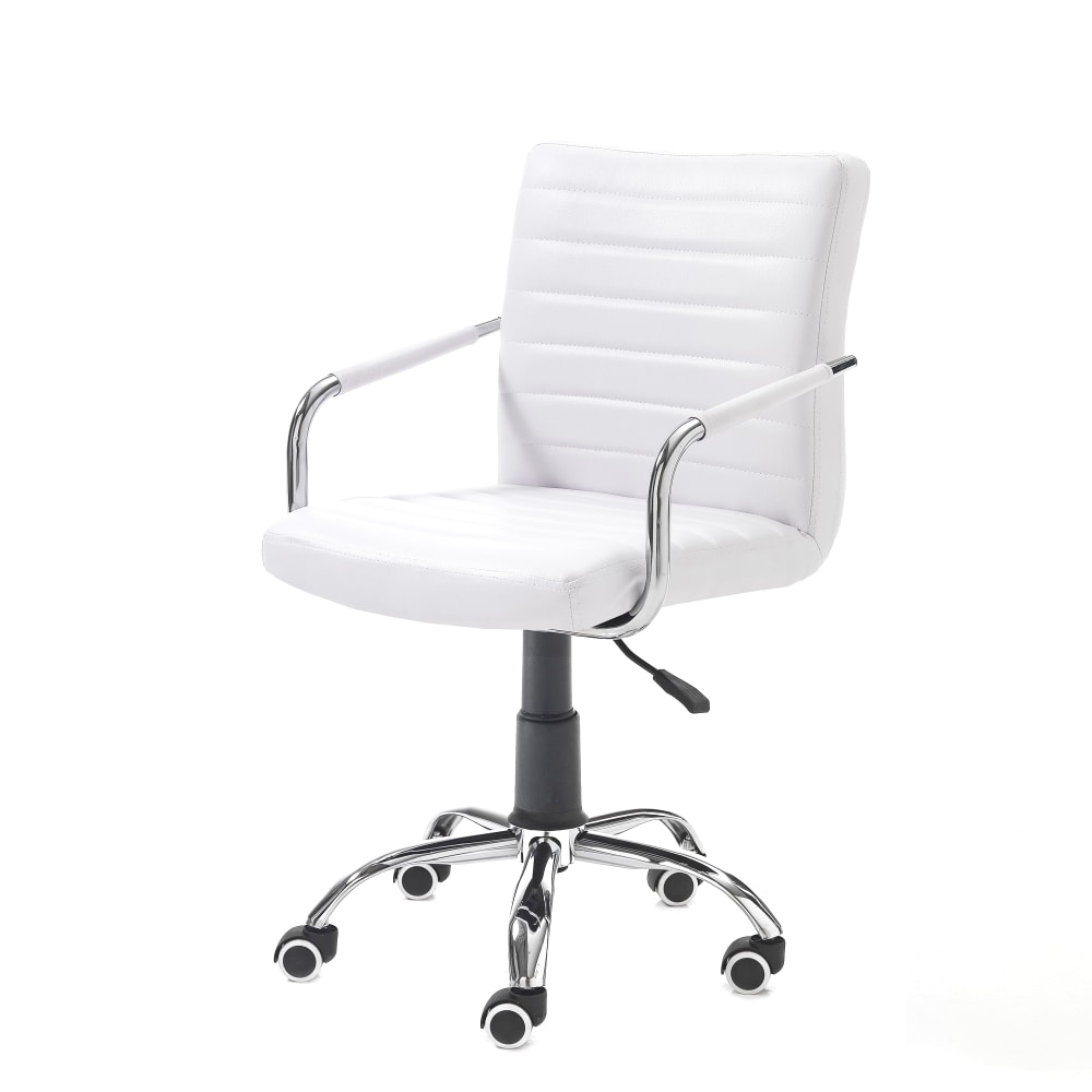 Poltrona ufficio bianca pelle sintetica, metallo cromato 82-92x52x56