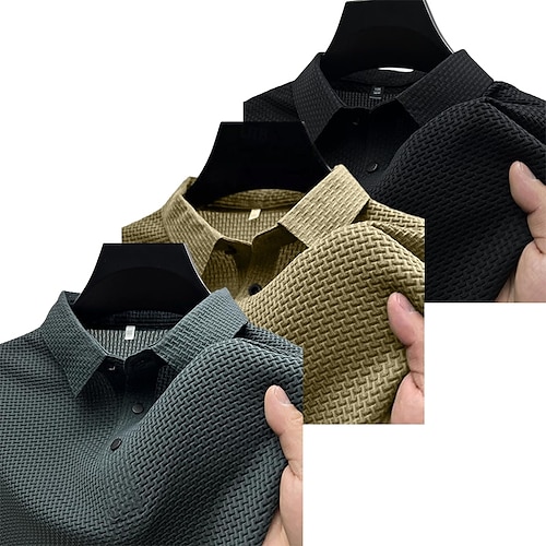 Polo da uomo 3 pezzi, maglietta da golf casual, classica, a maniche corte, alla moda, basic, tinta unita, confezione multipla da 3 pezzi, estiva, per tutte le stagioni, vestibilità regolare