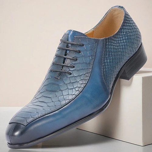 scarpe eleganti da uomo in pelle stampata coccodrillo blu – scarpe stringate di lusso con design alla moda, ideali per abiti da sera, feste e occasioni speciali