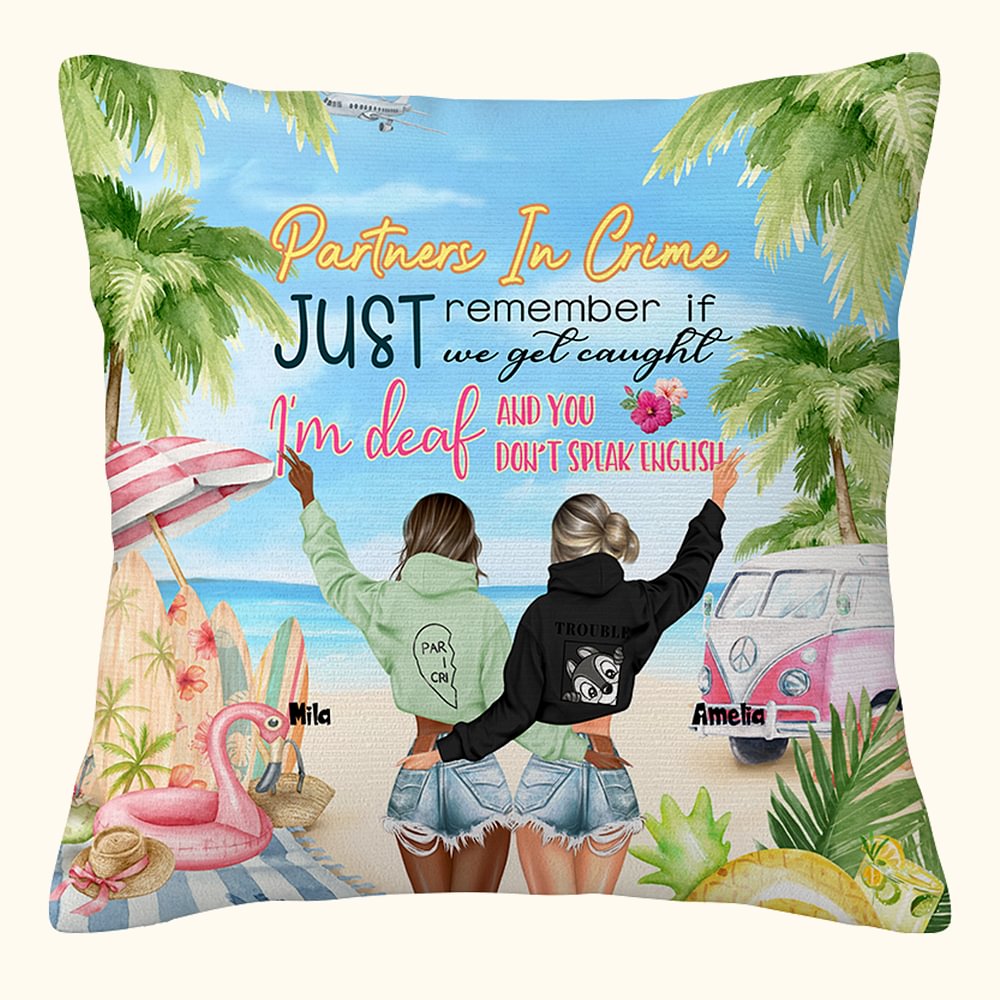 Personalizzato Beach View Just Remember If We Get Caught I'm Deaf And You Don't Speak English Throw Pillow Cover Friendship Gift Sofa Decor