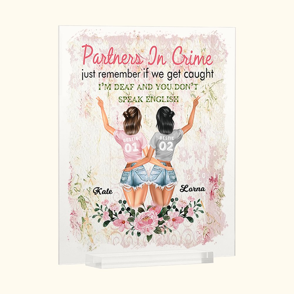 Personalisierte Blumen Partner in Crime Just Remember If We Get Caught I'm Deaf and You Don't Speak English Acrylic Plaque Freundschaft Geschenk
