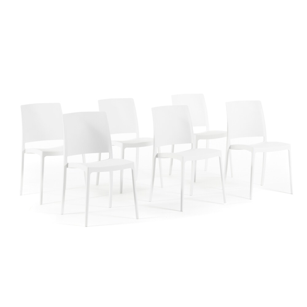 RATTATAN 6er-Set stapelbare Stühle aus Polypropylen mit Glasfasern für Garten oder Innenbereich, wasserabweisend und widerstandsfähig - MARIA - Weiß