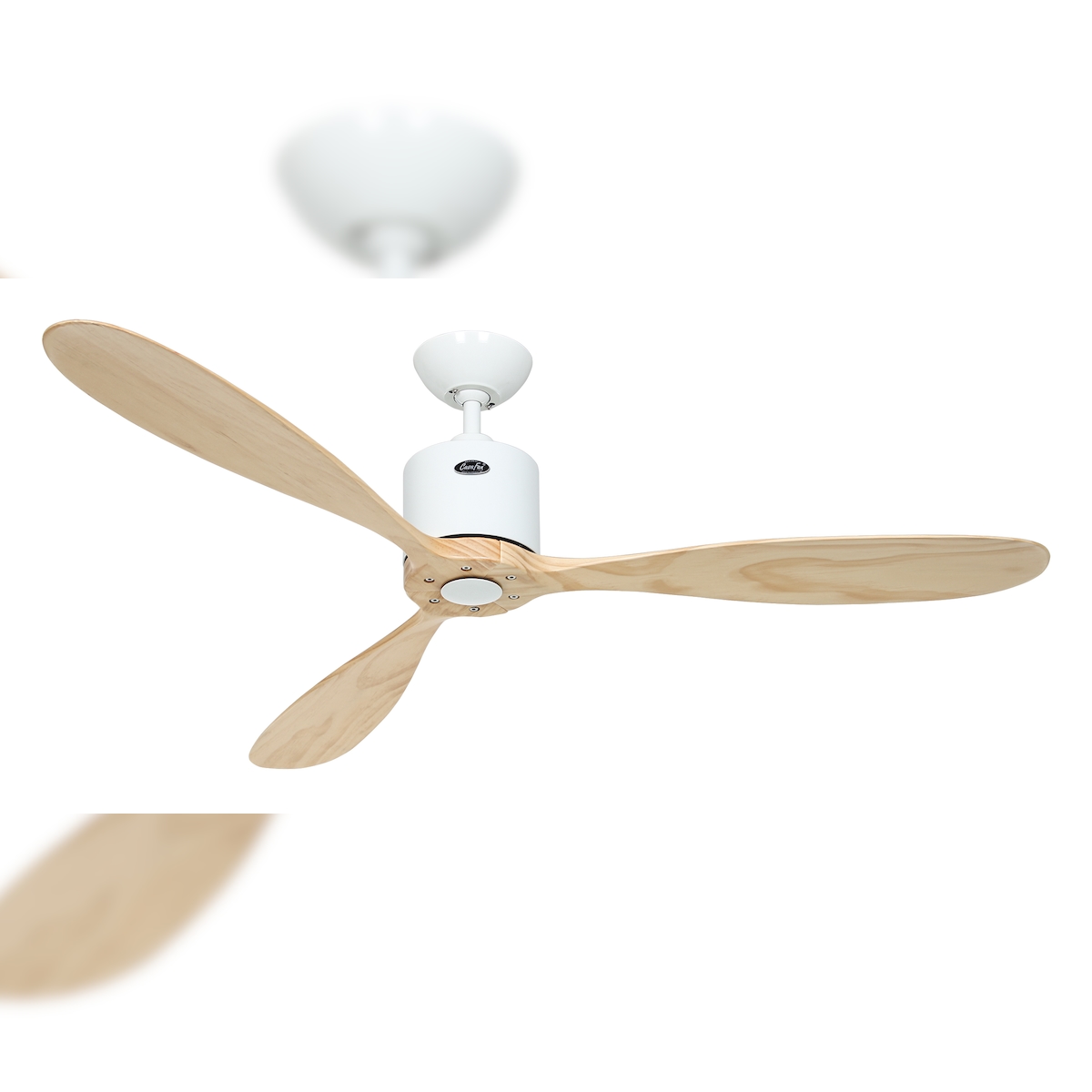 Lucande LED-ventilator Lineta, hvid, reb, Ø 103 cm, støjsvag Lineta Lucande, dæmpbar, Lyst træ, Stue/spisestue, Træ, Herregårds/rustik