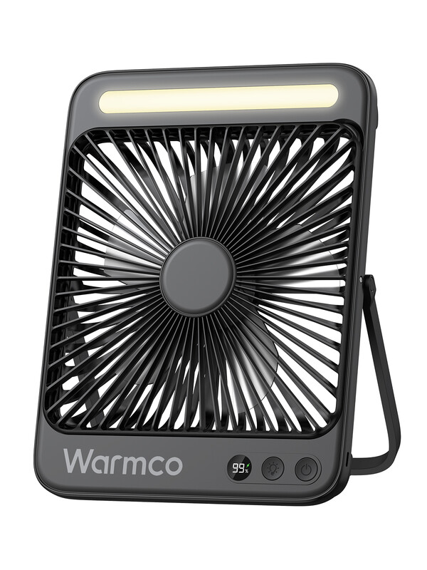 Warmco 20000 mAh Akkubetriebener Ventilator, 8 Zoll ultraschlanker tragbarer Campingventilator mit LED-Laterna, bis zu 48 Std. Laufzeit, wiederaufladbarer Tischventilator für Schlafzimmer, Outdoor, Zelt, Reisen, Kreuzfahrtschiff-Essentials