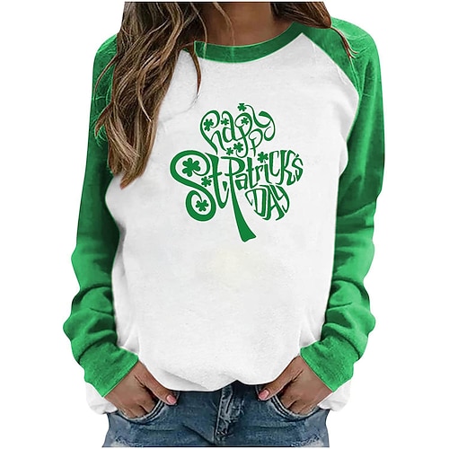 Festa di San Patrizio Per donna Maglietta Grafico Trifoglio Moda Classico Casual Manica Lunga Girocollo Top Regolari Quotidiano Weekend Abbigliamento da vacanza Stampato Verde chiaro Verde scuro Verde