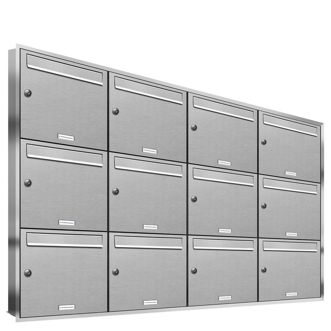 AL Briefkastensysteme 12 Fächer Premium Edelstahl Unterputz Briefkasten Anlage für Post A4, modern, robust, wetterfest, Artikelnummer: 331T12U4