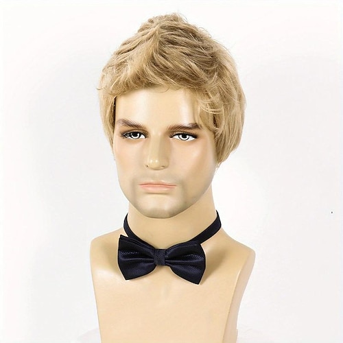 parrucche corte da uomo parrucche corte marrone scuro da 6 pollici parrucche sintetiche a strati diritte per l'uso quotidiano in costume da festa cosplay