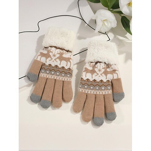 Guanti touchscreen natalizi da donna, design in maglia accogliente con motivo a fiocco di neve e alce, polsino in morbido pile, perfetti per le festività e per l'inverno