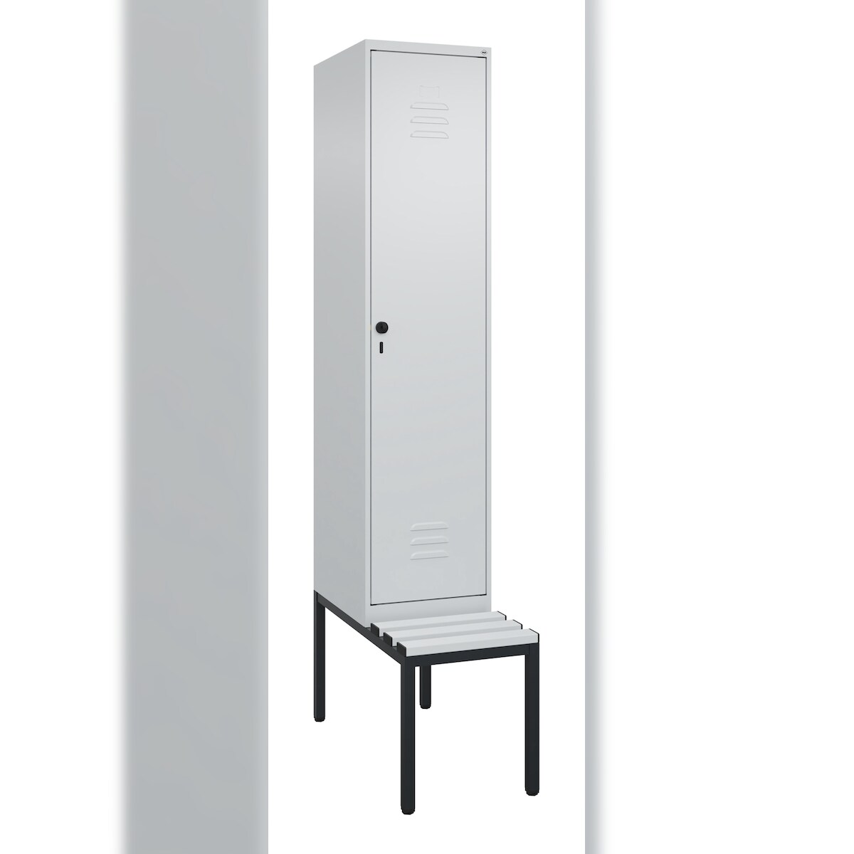 C+P Spind Classic PLUS, Kunststoff untergebaute Sitzbank, 1 Abteil, HxBxT 212x40x82cm, Sicherheitsdrehriegel, Hellgrau/Hellgrau von PROREGAL