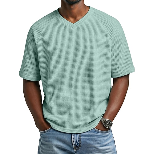 Da uomo Maglietta Waffle Maglietta Manica Corta Scollo a V Estate Tinta unica Moda Designer Casual Manica corta Casuale Quotidiano All'aperto Blu chiaro Nero Bianco Maglietta Top per Uomo