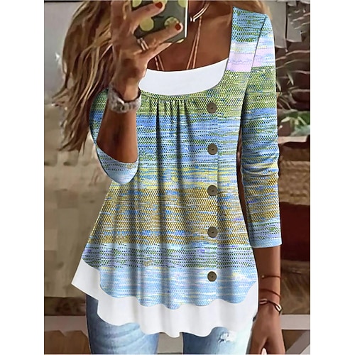Per donna Maglietta Ombre Grafico Geometrico Vintage Elegante Classico Manica Lunga Collo quadrato Top lunghi Quotidiano Weekend Patchwork Bottoni Stampato Rosa Blu Viola Verde Estate Primavera