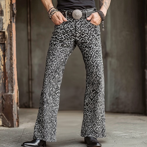 Per uomo Geometrico Plaid Graticolato Pantaloni da discoteca Pantaloni a zampa d'elefante anni '60 e '70 Misura del girovita medio Western Vintage Retrò All'aperto Vacanza Casuale Tasche Laterali