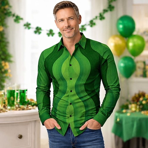 San Patrizio 2026 Retrò Vintage Anni '70 Camicia Camicia Aloha Lunghe Hippie Costume Per uomo Mascherata 4 Luglio Feste Festival Adulti Camicia
