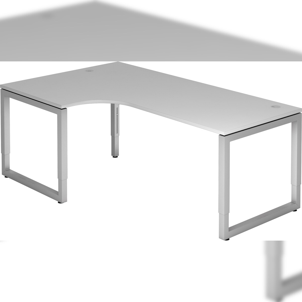 bümö höhenverstellbarer Eckschreibtisch R-Serie 200x120 cm in grau, Gestell in Silber - Schreibtisch L Form, großer Tisch für's Büro, Computertisch