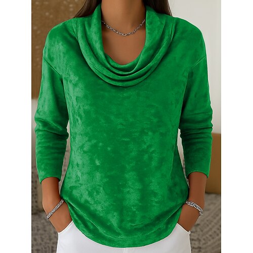Per donna Tunica Maglietta Tinta unica Grafico Elegante Vintage Moda Manica Lunga Scollo a Cascata Top Regolari Quotidiano Uscire Weekend Stampato A Strati Blu Rosa Rosso Marrone Verde Autunno Inverno