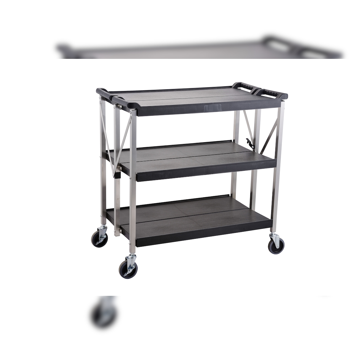 METRO PROFESSIONAL 3-faltbarer Trolley GFT2003, PP/Edelstahl, 51 x 93 x 93 cm, schwarz/silber