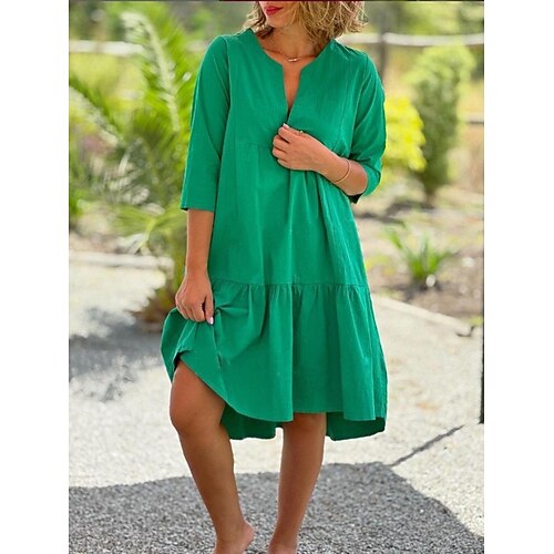 Per donna Blu Nero Arancione Estate Primavera Abito Midi Misto cotone Abito estivo in cotone Casual Vacanza Vestibilità comoda Semplice Collo a Spacco
