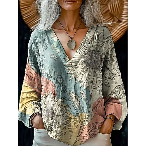 Per donna Blusa Floreale Retrò Vintage Etnico Manica Lunga Scollo a V Top Regolari Quotidiano Ferie Stampato Rosa Blu Viola Grigio Estate Primavera Autunno
