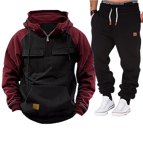 Per uomo Felpa con cappuccio Tuta da Ginnastica Felpa con cappuccio e pantaloni Impostato Felpa con Cappuccio Quotidiano All'aperto Vacanza Abbigliamento quotidiano Patchwork Tasca Mezza cerniera