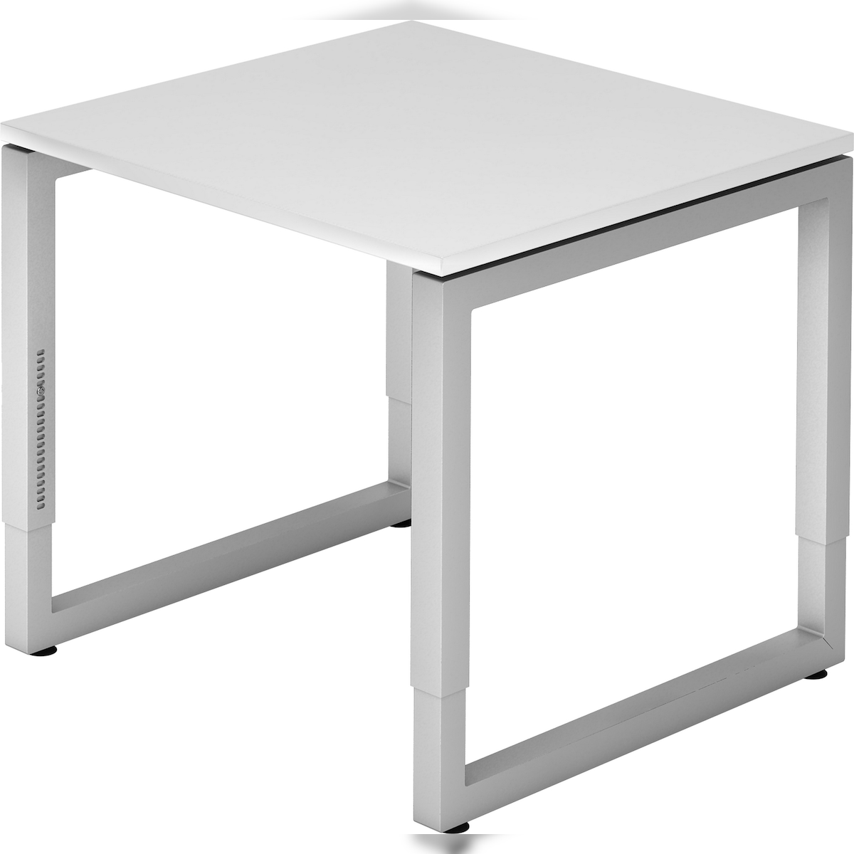 bümö höhenverstellbarer Schreibtisch R-Serie 80x80 cm in weiß, Gestell in Silber - PC Tisch klein für's Büro manuell höhenverstellbar, Computertisch