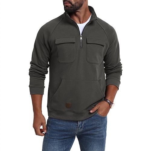 Per uomo Maglia Felpa con zip corta Nero Verde militare Cachi Caffè Grigio Colletto Mao Semplice Tasca Sport Outdoor Quotidiano Ferie Poliestere Streetwear Essenziale Casual Primavera Autunno