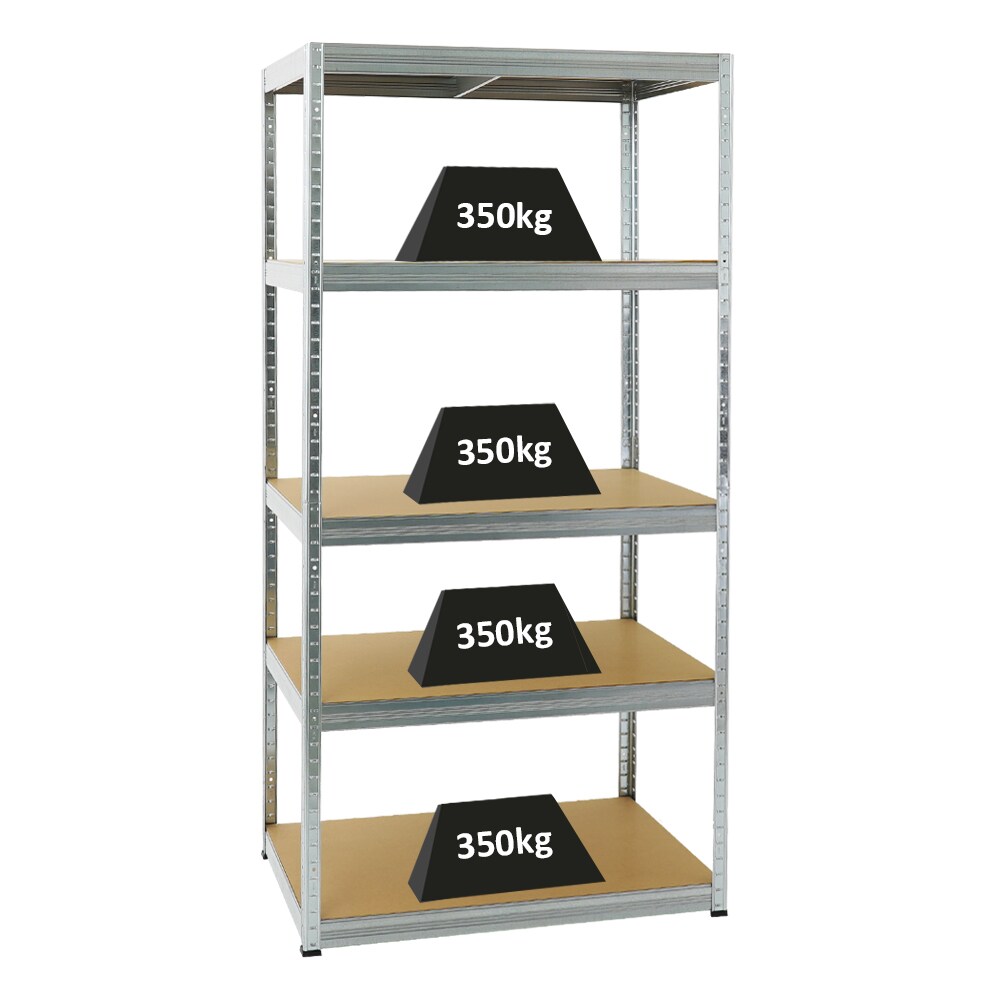 PROREGAL Schwerlastregal Slim Elephant M | HxBxT 180x90x60 cm | 5 Ebenen | Fachlast 350 kg | Verzinkt | Stecksystem Lagerregal Regalsystem