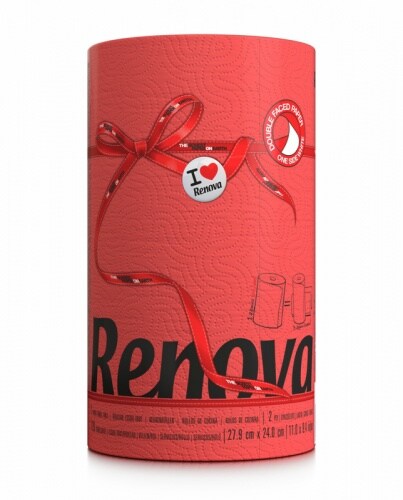 Farbige Küchenrolle in ROT XXL, Haushaltsrolle von Renova, 120 Tücher / Rolle - 1 Rolle