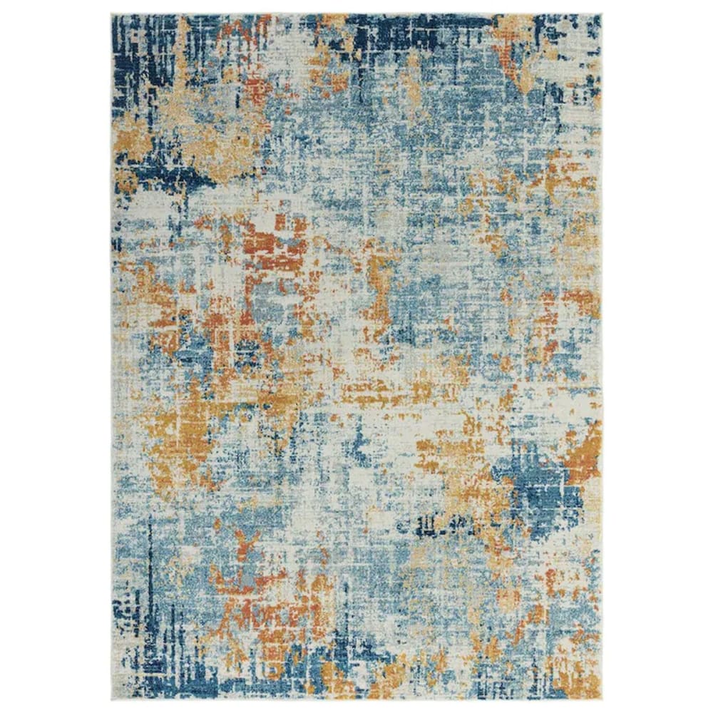 Atticgo Tapis en viscose géométrique beige/bleu/rouille 135x195 cm Multicolore 195x1x135cm