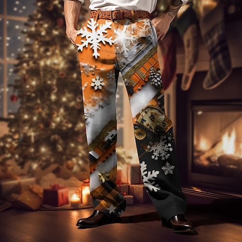 pantaloni da uomo con stampa scena natalizia fiocco di neve pantaloni casual da lavoro con stampa 3d pantaloni da strada da indossare all'aperto per lavoro poliestere brutto rosso blu viola s m l